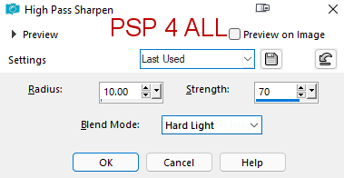 Fill with white. Selections > Select None. Add a layer and fill with white. Open NarahsMasks 1615 in your PSP. Layers > New Mask Layer. From an image and choose NarahsMasks 1615. Adjust >Sharpen > High Pass Sharpen