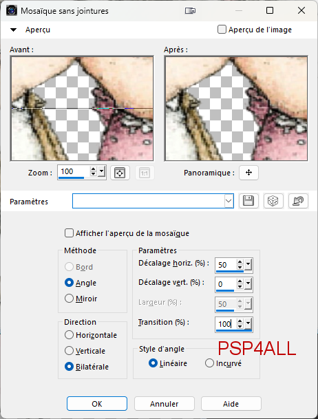 *** Ajouter le script dans le dossier Scripts-Sécurisés (voir plus bas - ETAPE 3). ETAPE 1 - Le fond 1. Ouvrir une image 850x550 fond blanc. 2. Ajouter un calque et Sélections > Tout sélectionner. 3. Ajouter le tube. 4. Sélections > Ne rien sélectionner. 5. Effets > Effets d'Image > Mosaïques sans jointures.