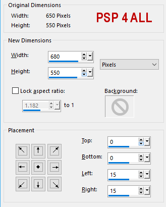 Open the template. Make a copy and close the original. Resize to have an image 680x550. Click on Image > Canvas Size