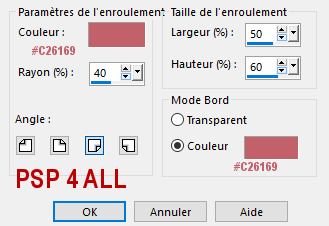 Selections > Select None. Delete the original layer. Add a Drop Shadow. Repeat for the heart shape layer. Move these 2 elements towards the left. Layer Love. Selections > Select All. Selections > Float. Selections > Defloat. Ajouter un calque. Add a layer and fill with #c26169. Then apply an Inner Bevel. Effects > 3D Effects > Inner Bevel as before. Delete the original layer. ETAPE 2: Elements 7flower - Image > Mirror > Mirror Horizont. Place on the left. Duplicate, this copy at 75%. Apply Eye Candy 4000 > Gradient Glow on both flowers.