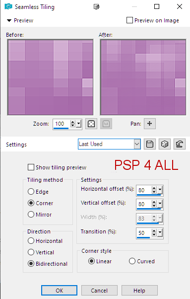 Adjust. Sharpness > Sharpen More. Mura's Meister > Perspective Tiling.