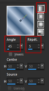Remplir avec un dégradé des 2 couleurs - Angle à 45° et Répétition sur 5.