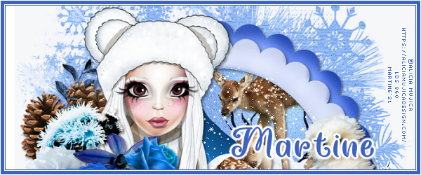 Merge > Merge Down. Rename Frames. STEP 2 - Other elements and Tube Miz_WW_element57 - 45%. Bottom. Miz_WW_element14 - 30%. Adjust > Sharpen > Sharpen More. Miz_WW_element10 - 40%. Image > Rotate left 90°. Bottom right. Duplicate and place lower on the left. Miz_WW_element4 - 35%. Bottom right. Miz_WW_element9 - 35%. Left. Miz_WW_element51 - 45%. Left. Add Tube. Miz_WW_element11 - 45%. Left. Miz_WW_element6 - 20%. Miz_WW_element8 - 45%. Miz_WW_element39 - 50%. Image > Mirror Horizontal. Miz_WW_element41 - 30%. Miz_WW_element40 - 40%. Miz_WW_element7 - 30%. Miz_WW_element42 - 45%. Miz_WW_element7 - 30%. Miz_WW_element16 - Colorize. Hue on 153 and Saturation on 193. 30%. Top right. STEP 3 - Elements in the Smaller Frame With the Magic Wand, click inside the Smaller Frame. Selections > Modify > Increase 5 pixels. Copy Paste Miz_WW_paper1 Into Selection. Keep selected. Add Miz_WW_element3 - 30%. On the left. Selections > Invert > Delete. Miz_WW_element1 on the right. Miz_WW_element34 - 45%. On the right. Delete. With the Paint Brush, color white, partially color the paws of the mother deerto give the impression that the paws are sinking into the snow. I resized all layers to 85%. STEP 4 - Credits Credits: with a small pixel font like Pixelette or any other small font. STEP 5 - Animation snow if you want to add it. Another option is to make a Forum tag if you so wish. If you don't want to animate but want to make a tag, then go straight to STEP 6. Unzip and open the snow animation in PSP. There are 10 frames. We will paste them one after the other on our work. Activate the layer we named Frames. With the Magic Wand, click inside. Click on the snow animation. Edit > Copy Frame 1. Back on your work, paste Frame 1. Name this layer Snow 1. Selections > Invert > Delete. Click on the snow animation. Edit > Copy Frame 2. Back on your work, paste Frame 2. Name this layer Snow 2. Selections > Invert > Delete. Click on the snow animation. Edit > Copy Frame 3. Back on your work, paste Frame 3. Name this layer Snow 3. Selections > Invert > Delete. And keep on until you have pasted all 10 frames onto youyr working image. Each time, rename each layer. Selections > Select None. --------------------- Close all Snow layers 1 to 10.