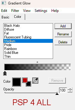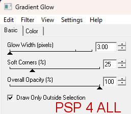 Fill with green #28B7AD or colour of your choice. Duplicate. Image > Mirror Vertical. Calques > Merge Down. Apply Eye Candy 4000 > Gradient Glow - Medium > Black. Same configuration. Copy Paste the wordart in the middle of the 2 diamond decos. See my tag. Colorize in green #28B7AD. Apply the same Gradient Glow. Activate the Frame layer. With the magic wand, click inside the Frame. Selections > Modify > Expand 3 pixels. Add a layer and et copy paste a background image/ scrapkit paper of your choice into the selection. Selections > Select None. Add the tube as a new layer in the Frame. Move the 2 layers: Background and tube and place under the Frame.
