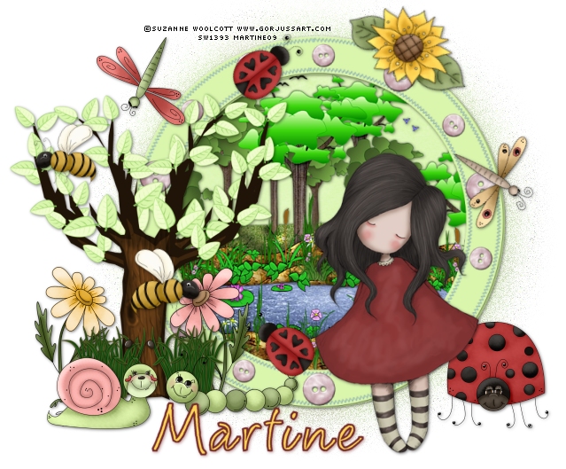 Chatita utilise un tube de Suzanne Woolcott alias Gorjuss qui peut être acheté ICI Scrap kit est un freebie de Seachell, qui s'appelle Spring Time et que l'on peut télécharger sur son blog ICI N'oubliez pas un petit merci quand vous le téléchargez. J'utilise le tube FrogPond de Marilyn Allen - vous trouverez ses autres tubes dans son forum ICI. L'inscription est gratuite. J'ai sa permission pour vous donner ce tube que vous pouvez télécharger ICI. La police que j'utilise c'est SA-Cacti Allons-y! Note: quand vous redimensionnez, cliquez sur Effets - Accentuer - Accentuer (Réglage - Netteté - Netteté). Pour les éléments, rajoutez une ombre portée (1, 1, 50 & 5) Ouvrez une nouvelle image 700 x 650 et remplir avec votre couleur préférée. Ouvrez le tube FrogPond (que je vous donne), redimensionnez-le à 80%, puis l'élément 27 (circle frame) à 75% et le papier #1 redimensionnés à 60%. Copiez-collez le circle frame sur votre image, puis le papier et le tube FrogPond sous le circle frame. Prenez la baguette magique et cliquez à l'intérieur du frame, puis Sélections > Modifier > Agrandir par 5 pixels. Puis placez-vous sur le calque FrogPond et Sélections > Inverser > cliquez sur la touche Suppr de votre clavier. Puis allez sur le calque papier #1 et répétez. Fermez le calque avec le fond et fusionnez visible les 3 autres calques: frame, tube et papier. Restez sur le calque fusionné, et dupliquez. Puis redescendez sur le calque original et Effets - Flou - Flou Gaussien de 20 (Réglage - Flou - Flou Gaussien de 20). Puis Effets - Effets de Texture - > Mosaïque de Verre avec ces configurations: # de colonnes et de lignes 100; Courbure du verre 13; Courbure des bords 15; Epaisseur des joints 5; diffusion des joints 17 et cochez Symétrique. Ouvrez l'élément 32 (tree=arbre); redimensionnez-le à 55% et le placer au dessus du 2ème calque frame puis le déplacer vers la gauche. Ouvrez l'élement 10 (doodle flower=fleur), cliquez sur shift+D pour le dupliquer, puis mettre cette couleur #deb454 en premier plan et avec l'outil Remplacer la couleur (ou Remplacer par la cible) changer les couleurs des pétales de ce deuxième calque fleurs. Puis redimensionnez les deux calques à 30%. Et copiez coller ces calques près de l'arbre. Ouvrez l'élément 6 (bee=abeille) redimensionnez-le à 15%, puis le copier coller sur votre image, puis Image > Miroir. Image > Rotation à gauche de 10 et placez sur une des fleurs. Redimensionnez l'élément 37 (grass=herbe)à 15% et le copier coller sur votre image. Dupliquez ce calque herbe et placez les de façon à avoir l'arbre entre les deux. Ouvrez l'élément 1 (worm=ver de terre) et le redimensionner à 35%. Copier coller sur votre image. Puis Image > Miroir. Redimensionner l'élément 7 (snail=escargot) à 25%, le copier coller comme sur mon résultat. Puis redimensionner l'élément 9 (lady bug=coccinelle) à 10%, copier et coller puis faire une rotation à gauche de 50 et le placer en bas du cadre. Dupliquer > Miroir et placer la copie en haut. Ouvrez l'élément 8 (lady bug=coccinelle), redimensionner à 25%. Copier et coller sur votre image et placer à droite. Prendre l'élement 3 (libellule) et redimensionnez à 20%. Image > Renverser et placez en haut à gauche. Prendre l'élement 4 (libellule) et redimensionnez à 20%. Image > Renverser et placez en haut à droite. Rotation à gauche de 20. J'ai pris l'élément 11 (sunflower=tournesol), redimensionné à 30%, puis Image > Rotation à droite de 25 pour faire mon soleil.lol Ajouter le tube de votre choix. Ok, nous avons presque fini. *Quand vous êtes satisfait avec le placement de tous les éléments, fusionner visible tous les calques. Ajoutez le copyright et votre nom. Enregistrez en png..vous avez fini! Si vous voulez que le fond de votre tag soit transparent, fermez le calque Fond avant de fusionner visible tous les calques. Puis enregistrez. Merci d'avoir fait mon tuto. Si vous avez des questions, n'hésitez ps à me contacter. A la prochaine. Traduction et