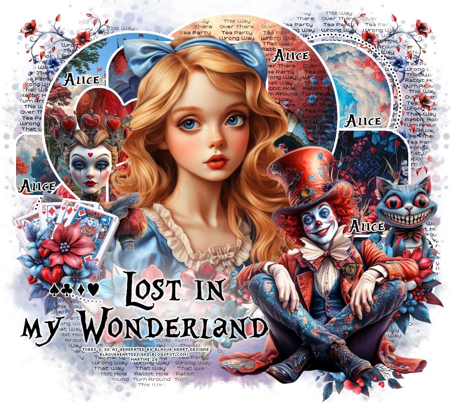 ![]() Template: Lost in my Wonderland on Queen of Darkness blog. Download here. AI Scrapkit Alice on Blaque Heart Designz blog. Download here. Mask: Mask_DFly_0020.jpg by Dragonfly. Download here. Plugins: Eye Candy 4000 > Gradient Glow. Fonts: Alice in Wonderland for the text and Pixelette for the credits ****************************** Reminder: *** Method to color a layer or add a paper - To fill a layer with colour, Selections > Select All. Selections > Float > Selections > Defloat. Or click with the magic wand. Add a layer > Fill with the new colour or paper, texture. Apply plugin if needed. Selections > Select None. Or click on Selections and paste the paper or texture as a new layer. Selections > Invert. Delete. Select None. Delete the original layer. *** Depending on the colors & tube you are going to use, feel free to change the mode and opacity of the layers. *** Template: I work from the bottom to the top. STEP 1 - Background 1. Open the template. Shift+D to duplicate. 2. Delete layer Raster2 - credits. 3. Raster 1: Selections and fill with BHD_Alice-Paper (29). 4. Select None. 5. Open Mask_DFly_0020.jpg. 6. Layers > New mask layer > From an image and choose Mask_DFly_0020. 7. Click on OK. 8. Layers > Merge group. 9. Duplicate. 10. Image > Mirror. 11. Opacity of these 2 layers on 40%. 12. Copy the text layer above the Grey Circle layer. 13. Duplicate to have 4 copies in all. 14. Place a copy top right, another copy a bit lower on the right, another top left and another bottom left (see my tag). 15. BHD_Alice-El (147) - 30%, top right. 16. Duplicate. 17. Image > Mirror witth the copy on the right. 18. Duplicate the copy. 19. And move it slightly down.
